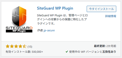 - SiteGuard WP Plugin(作者: jp-secure)/ ja.wordpress.org
