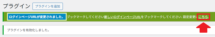 プラグインの有効化を行うとプラグイン一覧の上部に次のようなメッセージが表示されます。