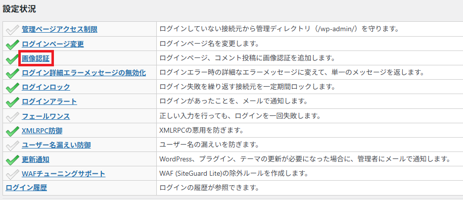 管理画面の左メニューに「Site Guard」という項目が追加されているので選択します。