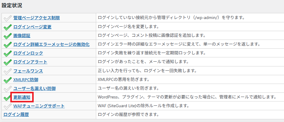 WordPress本体、プラグイン、テーマいずれかの更新があった場合に管理者に通知する機能です。