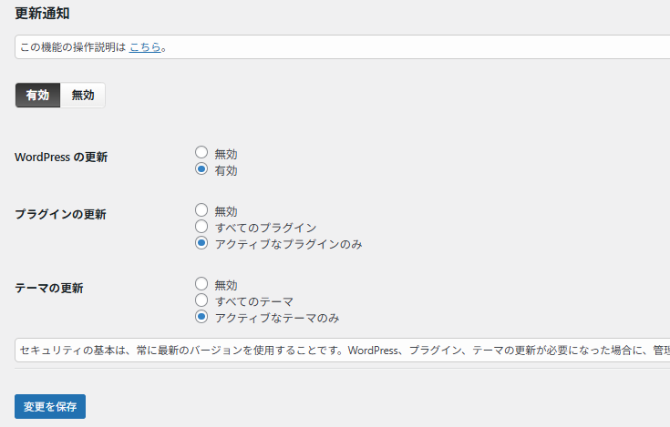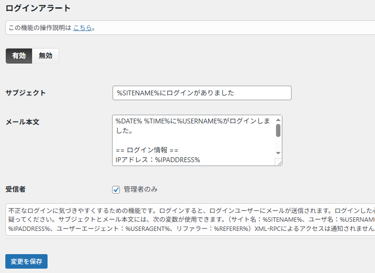 有効化したい場合は「有効」を選択し、「変更を保存」をクリックします。