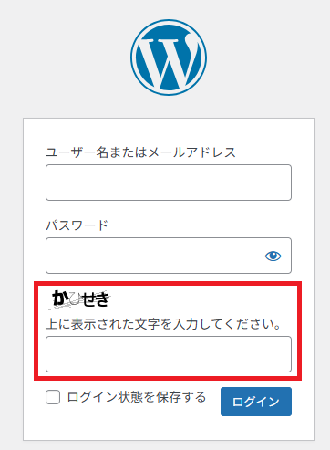 画像認証機能を有効にした場合、ユーザ名(またはメールアドレス)とパスワードに加えて、次のような画像を使った文字入力が追加されます。人間による不正アクセスは防げませんが、AIや機械を使った不正アクセスを防ぐ手段にはなります。